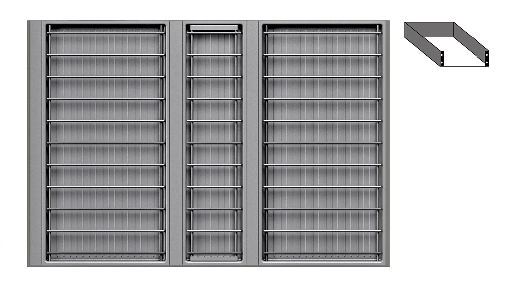 • 1 большой модуль для посуды + 1 большой модуль с решеткой + 1 малый модуль для посуды