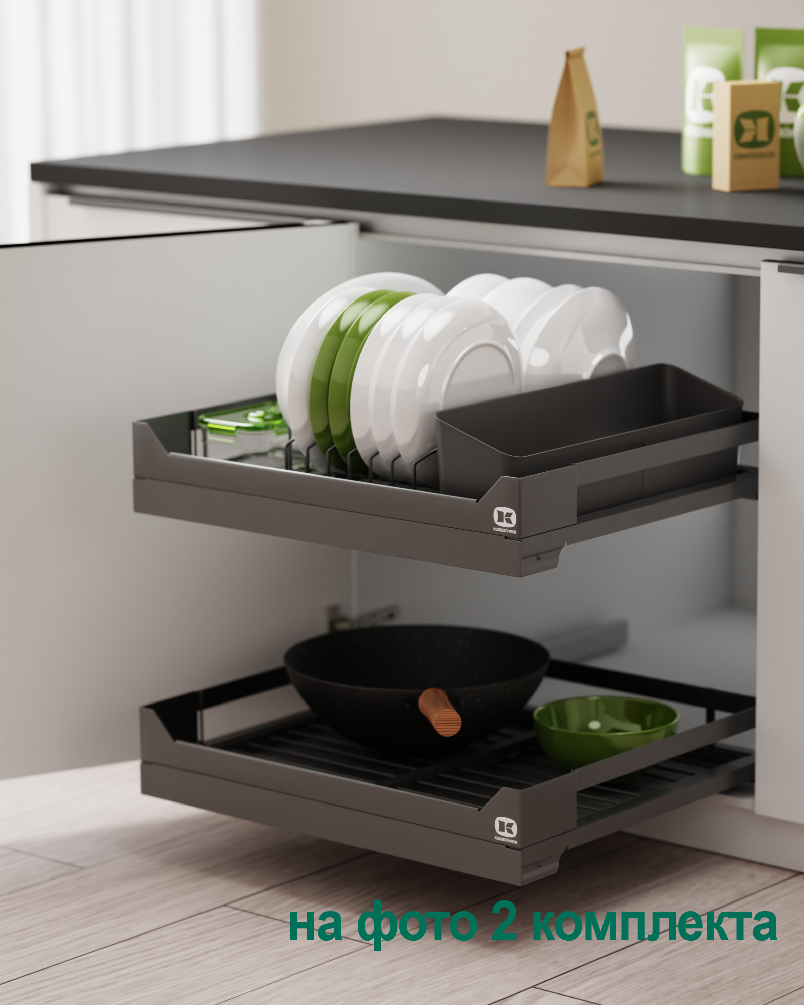 Модель — 1 большой модуль для посуды + 1 большой модуль с решеткой + модуль для столовых приборов
