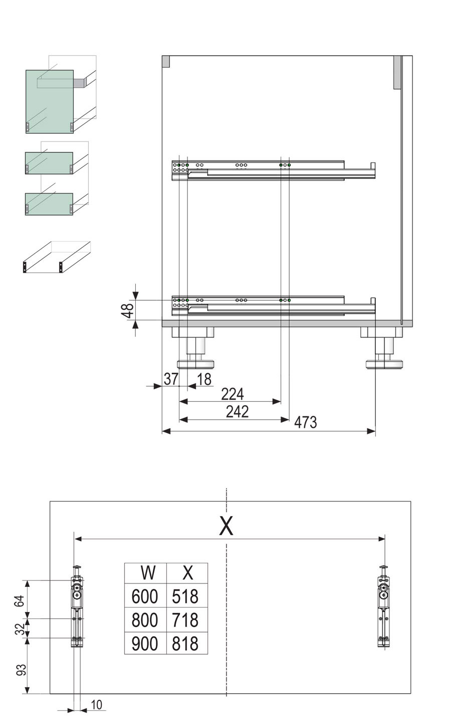 Тип крепления полки — полка с креплением к фасаду (Ф)