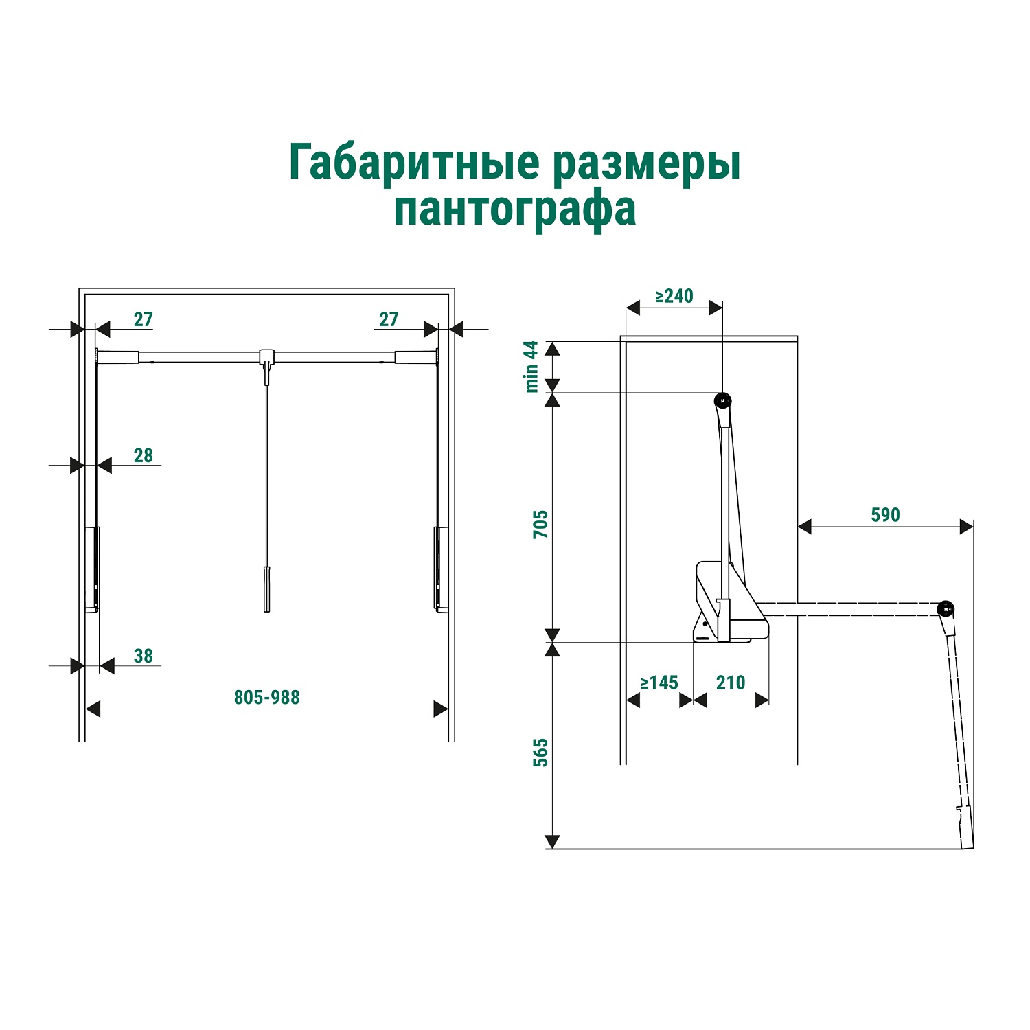 Пантограф для гардеробной стандартный Конеро W 805-988 мм нагрузка 0,5-12 кг цвет ЧЕРНЫЙ Kessebohmer | официальный магазин